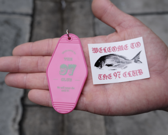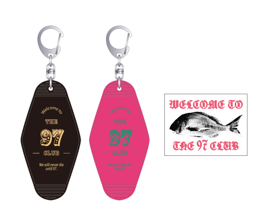 渡邊一丘の誕生日ソロイベント「THE 97 CLUB」にて販売した、モーテルキーホルダーと魚拓ステッカーのセット。